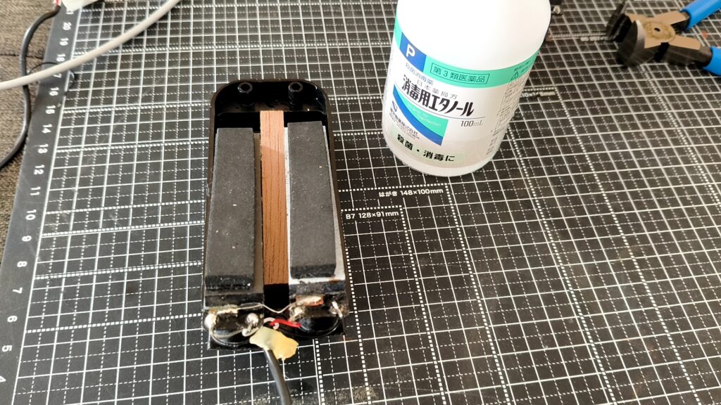 綿棒で適量をしみこませ、PUやケーブルから剥離させる。