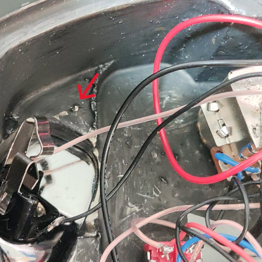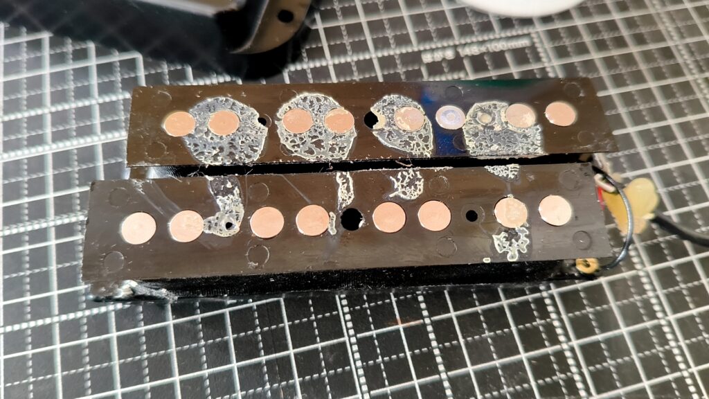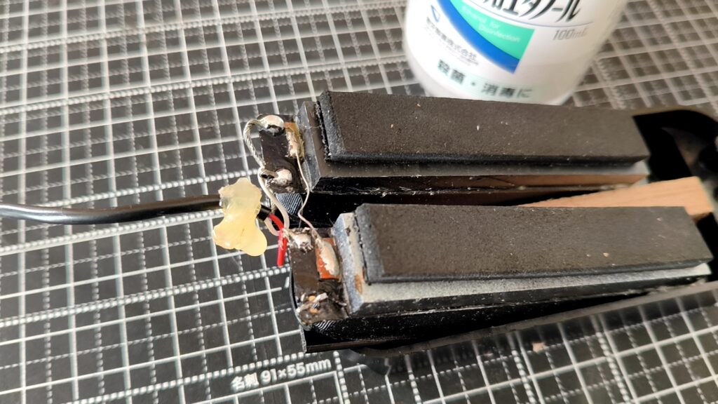 PUキャビティとコントロール、ブリッジの台座の底に導電塗料を塗りました。