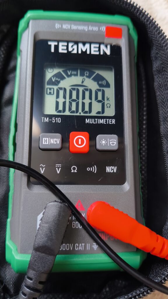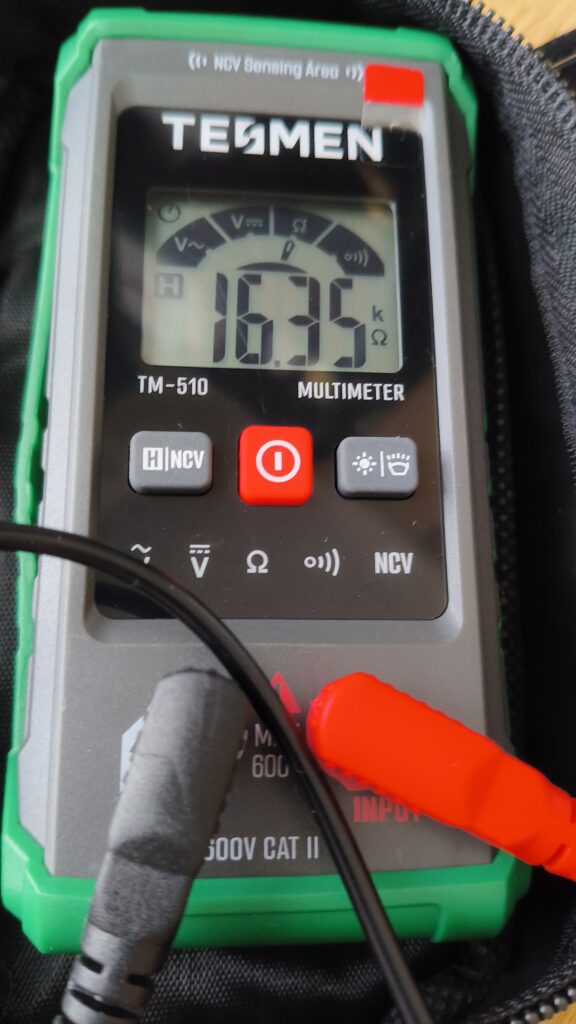 抵抗値は片側が約8.1kΩ、両側で約16.3kΩくらい(フロント・リアどちらか忘れたが、同じくらいの値。)